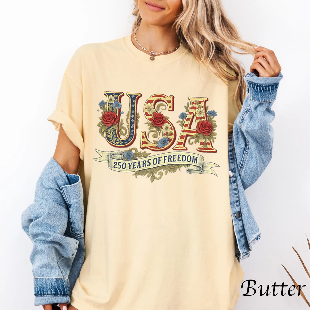 Comfort Colors® Retro Usa 250 Shirt, Independence Day Shirt, Celebrate 250th Anniversary Shirt Usa Flag Tee 4th of July Shirt Patriotic Gift